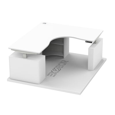 The LuxeCurve L-Shape Standing Desk is a premium workstation designed to enhance your productivity with an elegant and functional design. Perfect for executive offices or premium home setups, this three-leg standing desk redefines ergonomic excellence with its distinctive L-shape and seamless integration of storage.
