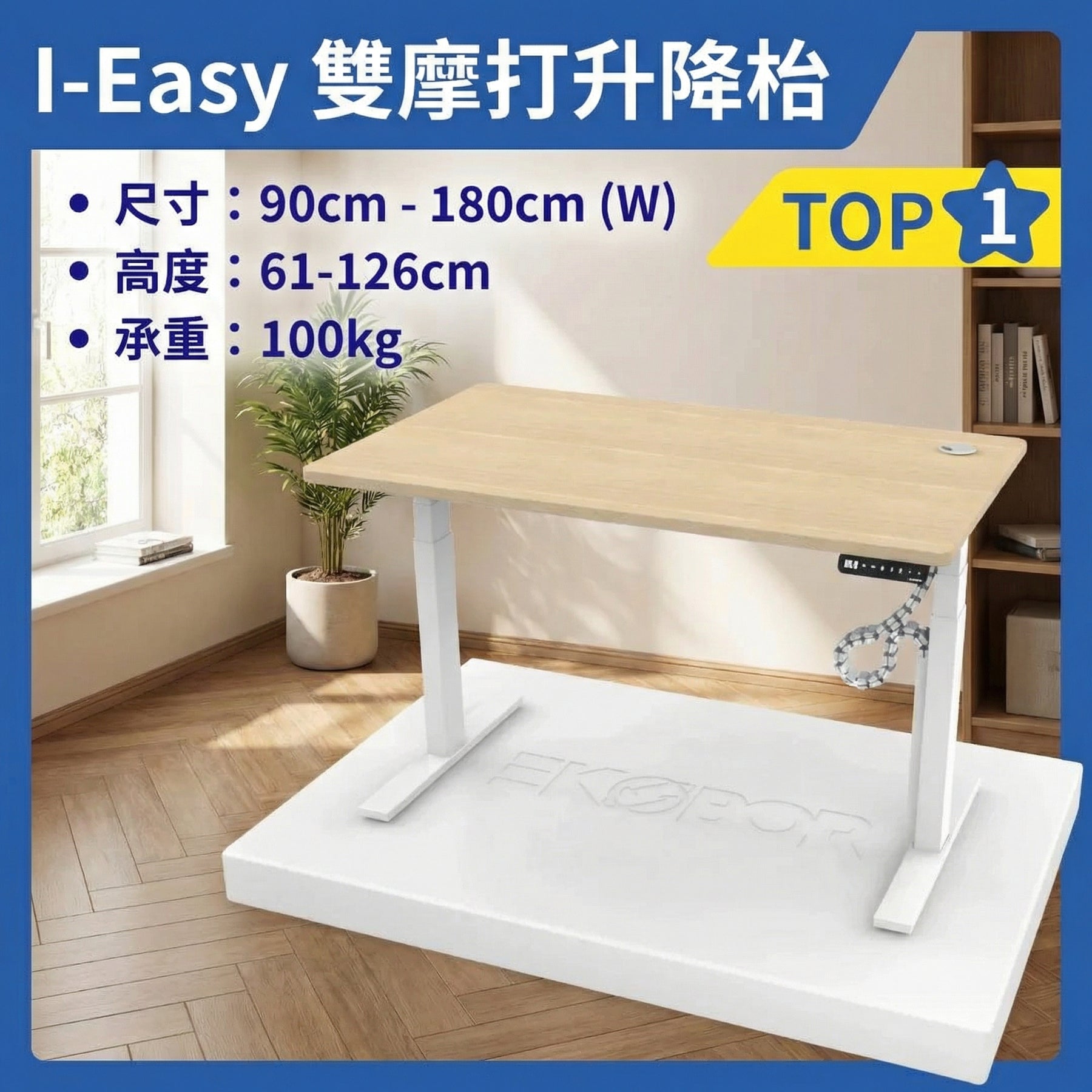 🥇!Top 1 Family家庭式 雙摩打 Dual motors I-EASY Standing Desk (🎁送贈包$430電線管理) - 120cm身高或以上 (有存貨)