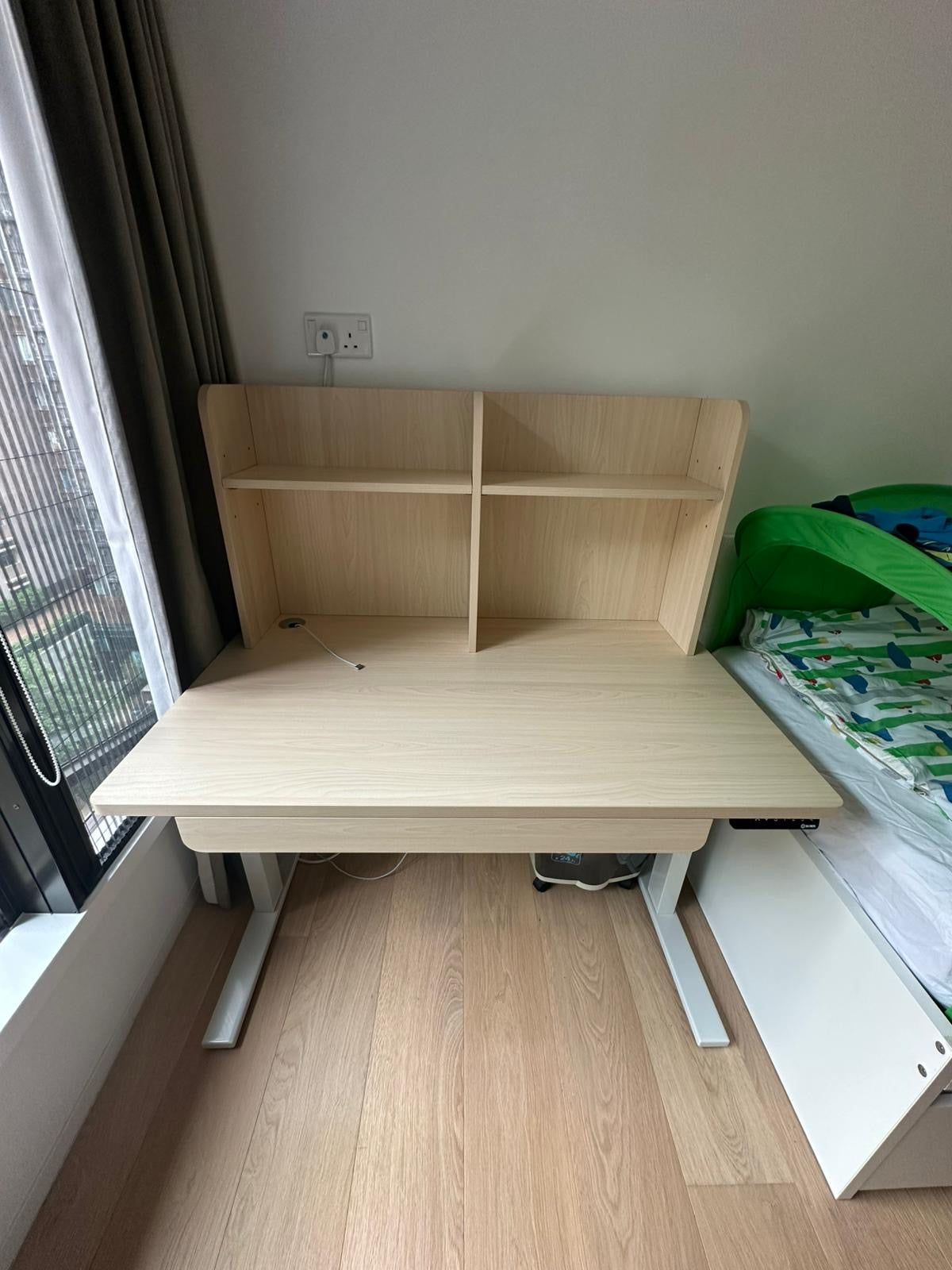 - 更大的整合書架:桌面上寬敞的內置書架可容納更多書籍、文具和學習工具。