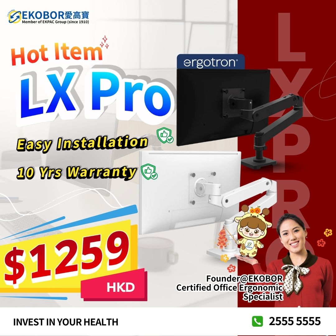 Ergotron HK Authorized Reseller | Ergotron LX Pro Desk Monitor Arm | PC monitor stand